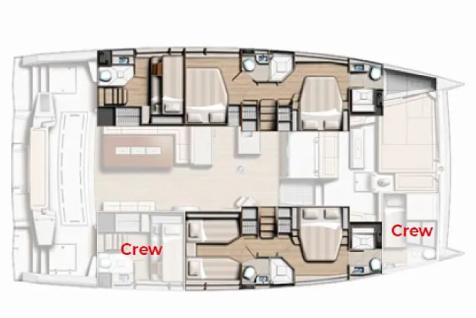 En su versión de charter, el MIM OCEAN 1 ofrece una distribución optimizada para el confort, con amplios camarotes dobles, baños en suite, climatización, generadores, electrónica completa y una cocina totalmente equipada. Cada detalle ha sido pensado para garantizar autonomía, privacidad y bienestar a bordo, incluso en estancias prolongadas.