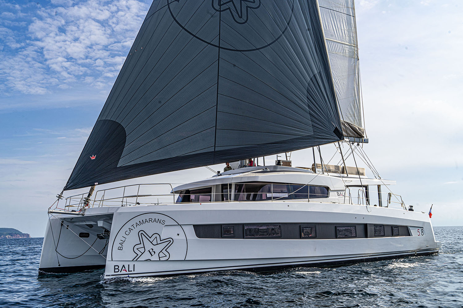 Con casi 18 metros de eslora, el BALI 5.8 destaca por su revolucionario concepto Open Space, donde la icónica puerta basculante BALI integra completamente el salón interior con la bañera de popa, creando un único espacio continuo, luminoso y ventilado. Esta arquitectura convierte cada jornada de navegación o fondeo en una experiencia social y confortable, ideal para grupos exigentes y charters premium.