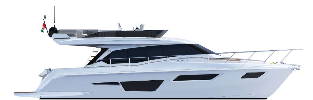 El Ferretti 500 forma parte de la nueva generación de flybridge yachts del astillero italiano, destacando por su combinación de diseño deportivo y elegancia clásica.